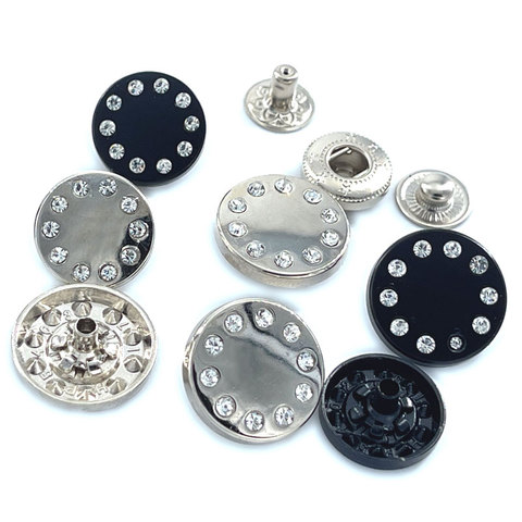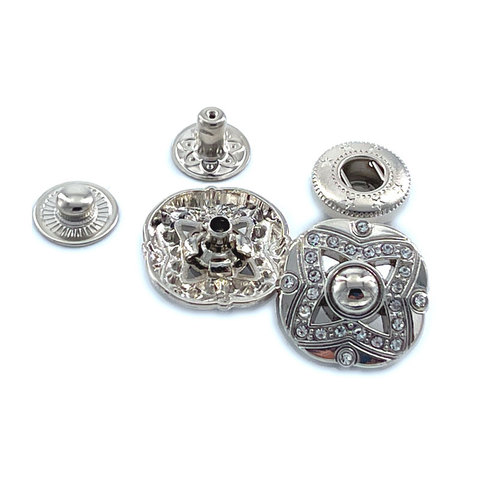 Manteau fantaisie personnalisable pour femmes avec strass argentés Gunmetal pressé en alliage de zinc bouton pression en métal perle fleur logo fournisseur